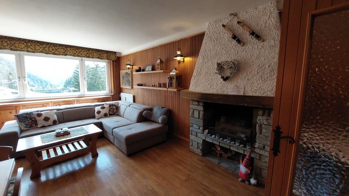 3-room apartment 95 m2 on the 3. plan. Spacious and bright, comfortable furnishings and with wooden furniture: entrance hall. Large living/dining room with panoramic window with 1 double sofa bed dining table, dining area and TV. 1 double bedroom with panoramic window. Exit to the balcony. 1 bedroom with 1 x 2 bunk beds. Exit to the balcony. Kitchen (oven, dishwasher, 4 induction hobs, toaster, electric kettle, microwave, freezer, electric coffee machine.. Exit to the balcony. Shower/WC, shower/bidet/WC. Heating. Parquet floors, stone floors. Large balcony. Balcony furniture. Stunning panoramic views of the mountains and valley. Facilities: washing machine, hairdryer. Internet (wifi, free). Please note: non-smoking apartment. NO animali