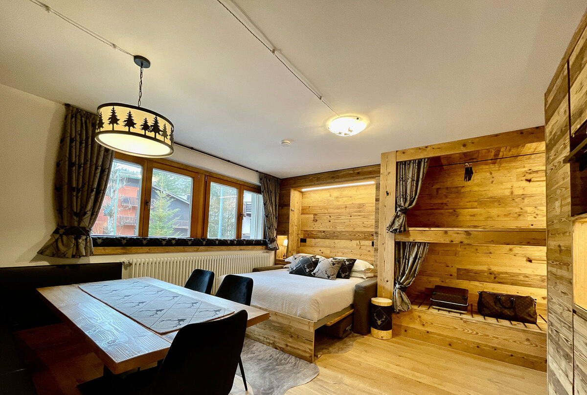 The Ruscello Mountain Apartment is a brand new apartment, located in a newly built building, luxury finishes, with all comforts, lift, garage, free private storage, suitable for storing sports equipment, ready to welcome you in the beautiful Madesimo for your your skiing or summer holidays, a few steps from the slopes and paths. It is located in the main street of the center of Madesimo, it is close to shops, bars, restaurants and the ski slopes, it will allow you to fully enjoy your holiday without giving up comfort and relaxation. The apartment can comfortably accommodate up to a maximum of 2 people, it is bright, welcoming, furnished in a warm, modern mountain style. Designed for couples, looking for a holiday of relaxation, tranquility and a great desire to dream... to make you feel at home after a day of skiing or after pleasant excursions in the mountains. It is presented in a large studio apartment of 38 m2 on the first floor, made entirely of wood, in warm mountain style, and is composed of a large open space used as a kitchenette, equipped with everything necessary, induction hob, hood, fridge with freezer, oven/microwave, Lavazza coffee machine, kettle, toaster, dishwasher, a table with bench, a comfortable sofa, smart TV, foldaway double bed with topper, a comfortable bathroom with shower, bidet, toilet, hairdryer and first aid kit. The apartment is equipped with free high-speed wi-fi internet connection. Only dogs are allowed, their presence must be communicated and reported in advance, there is a supplement. Smoking is prohibited in the apartment.