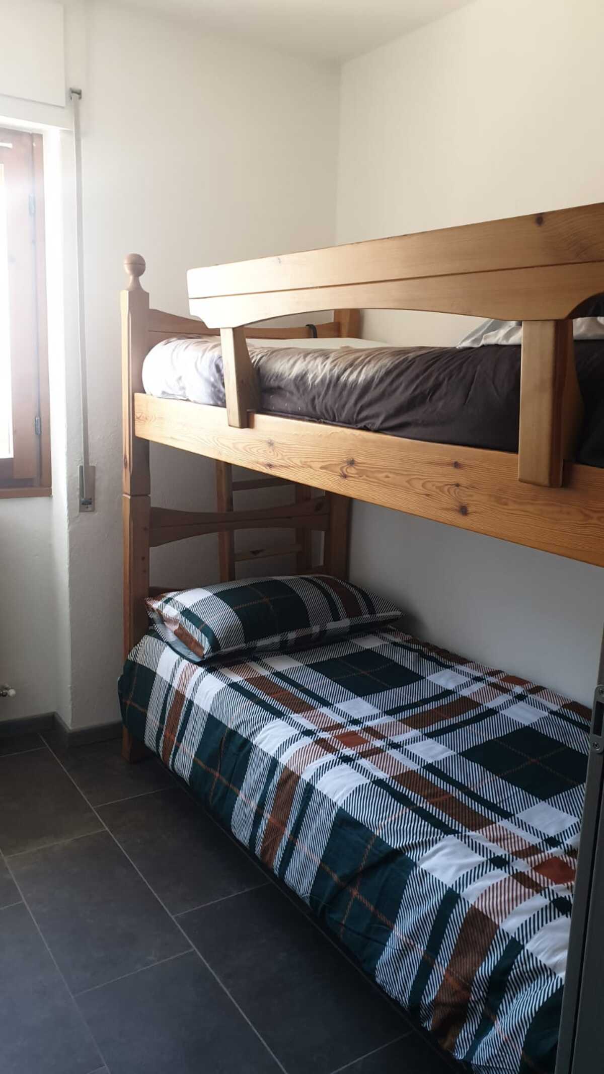 Dispone di un ampia stanza matrimoniale, una camera con un letto a castello, bagno con doccia, soggiorno con angolo cottura. Due balconcini con vista lago rivolti a sud completano l'appartamento.