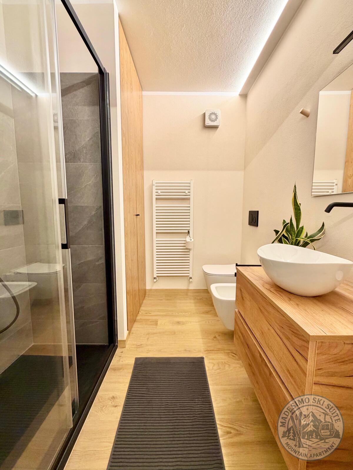 🚿 Bagno con ampia doccia + lavatrice/asciugatrice