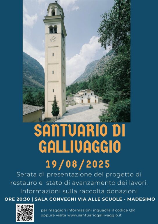 Vi invitiamo a partecipare a una serata speciale dedicata al futuro del Santuario della Madonna di Gallivaggio, luogo ricco di fede, storia e bellezza, duramente segnato dalla frana del 29 maggio 2018.